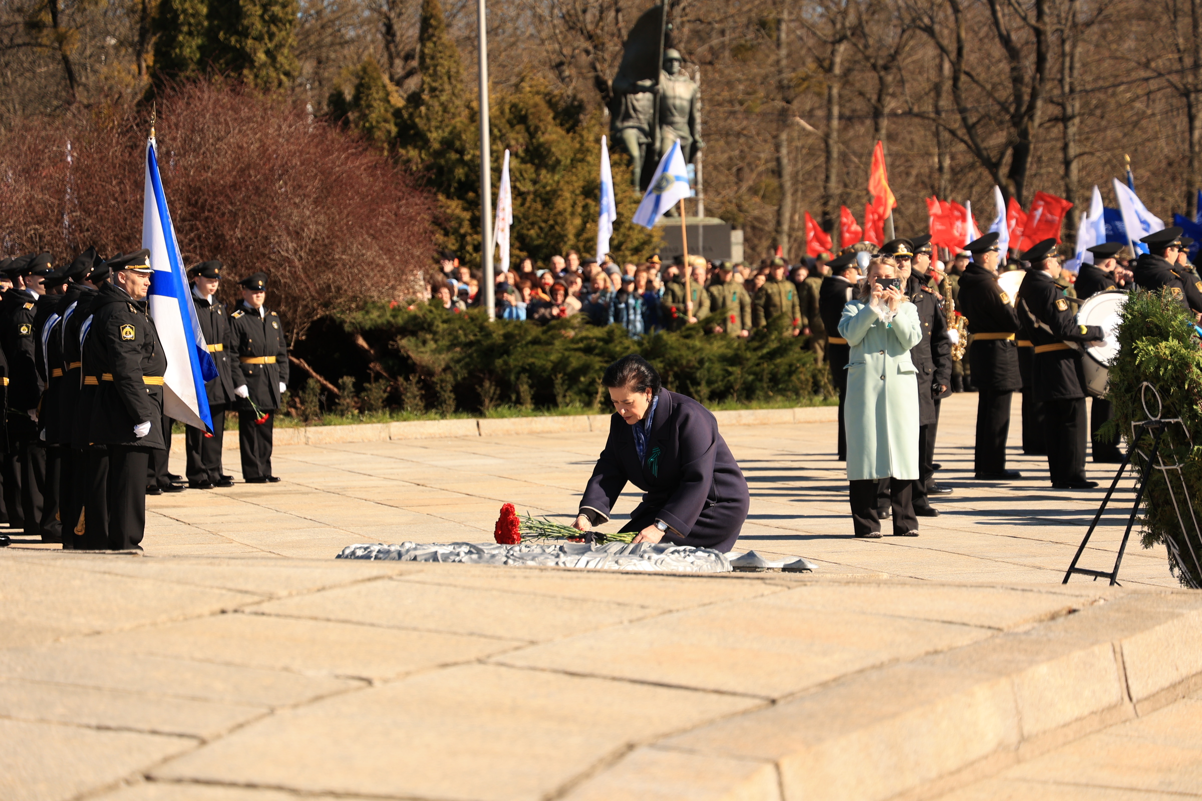Утро памятной даты 9 апреля началось с торжественной церемонии возложения венков и цветов к памятнику 1200 воинам 11-й гвардейской армии, погибшим при штурме Кёнигсберга. Минутой молчания почтили память погибших героев.
