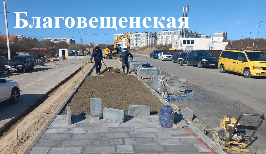 На Благовещенской продолжают укладывать плитку, благоустраивают объект.