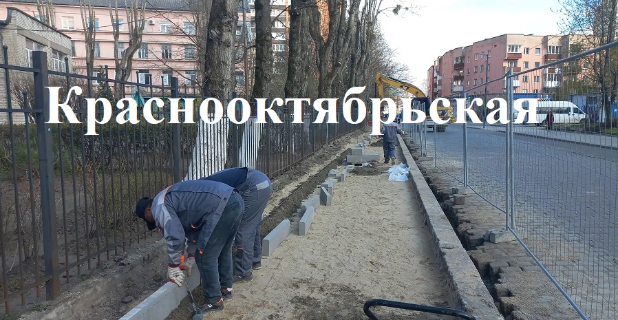 В переулке Желябова устраивают основание; на Дзержинского готовят основание и выставляют борт; на Воздушной - демонтажные работы, устройство оснований, установка бортового камня, а также регулируют люки – уже на проезжей части; на Краснокаменной и Полоцкой устраивают основания и устанавливают борт; на разных участках Краснооктябрьской - устраивают тротуар и благоустраивают территорию.