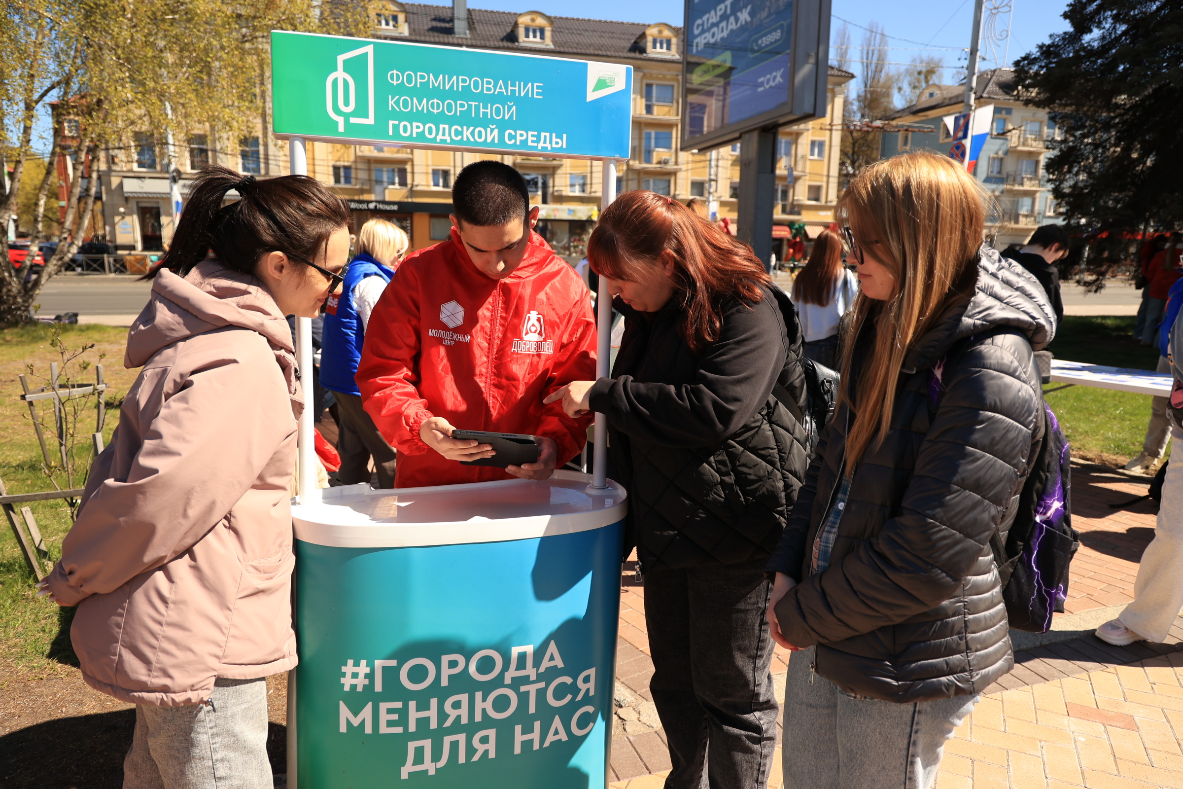 На сегодняшнем мероприятии также работали волонтеры, которые предоставляли возможность горожанам отдать свой голос за объекты благоустройства в рамках программы «Формирование комфортной городской среды» национального проекта «Инфраструктура для жизни».