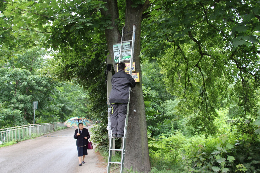Демонтаж незаконных рекламных конструкций с улиц города и очистка деревьев и световых опор от информационного бумажного спама для сотрудников отдела рекламы комитета архитектуры и строительства (КАиС) – процесс постоянный, который в ближайшей перспективе, вряд ли закончится. Дважды в неделю они совершают выезды, проводя на калининградских улицах мониторинг на предмет наличия на зданиях, заборах, опорах освещения, остановках общественного транспорта рекламных конструкций, установленных незаконно или срок разрешения на которые истек.