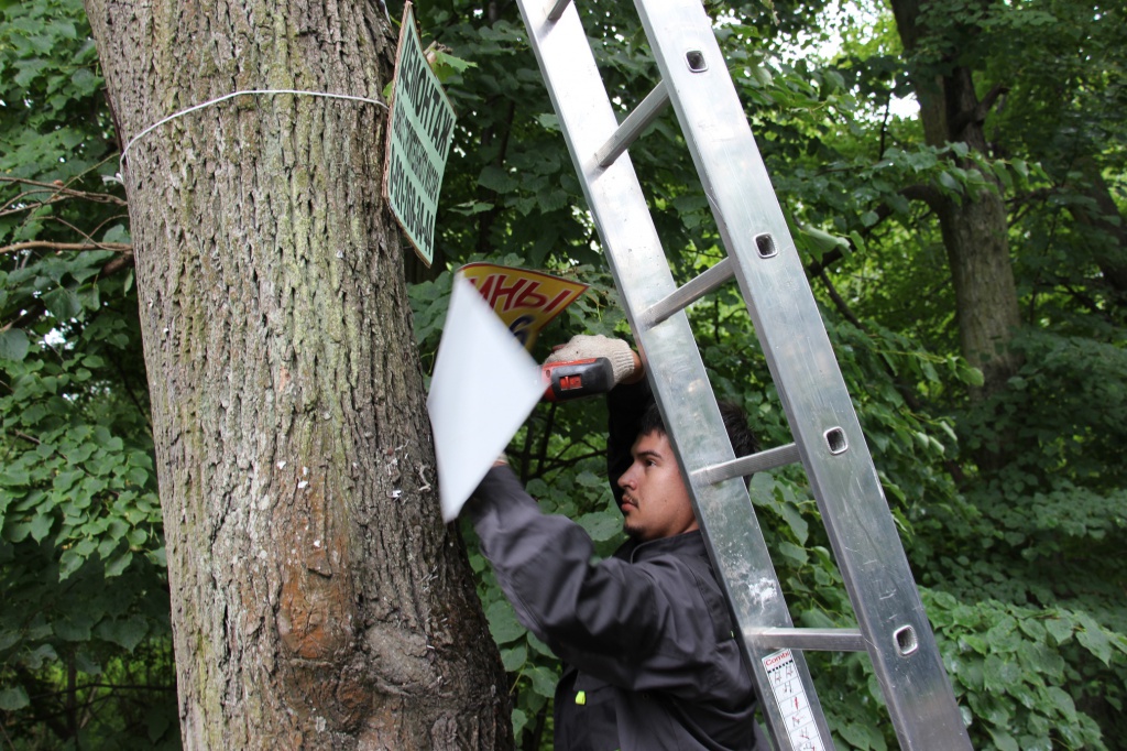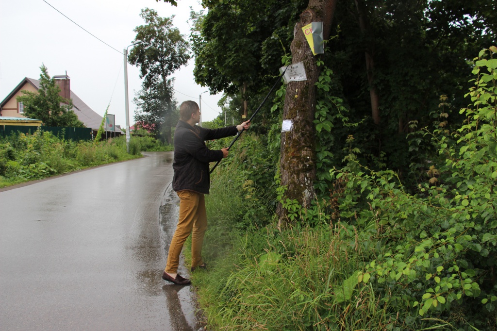В сегодняшнем рейде в качестве волонтера принял участие калининградец Ярослав Воловик. С друзьями и знакомыми они уже несколько месяцев самостоятельно занимаются очисткой деревьев и световых опор от рекламного спама.