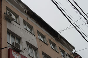 В настоящее время по поручению главы городской администрации Светланы Мухомор специалисты муниципального «Управления по делам ГО и ЧС» удаляют обломки козырька на входом.