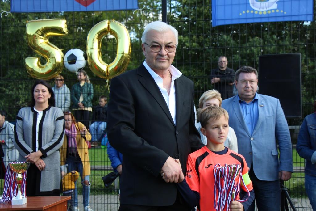 По поручению главы Калининграда Александра Ярошука сертификат на 100 тысяч рублей на приобретение спортинвентаря и благодарственное письмо директору школы-юбиляра вручила Анна Апполонова, председатель комитета по социальной политике. Благодарности и грамоты по случаю 50-летия вручены также целому ряду тренеров и отличившихся игроков.