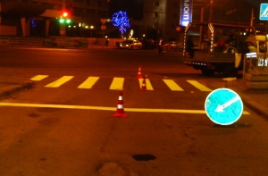 Калининградская служба заказчика приносит извинения за временные неудобства, а также просит с пониманием отнестись к работе разметчиков.