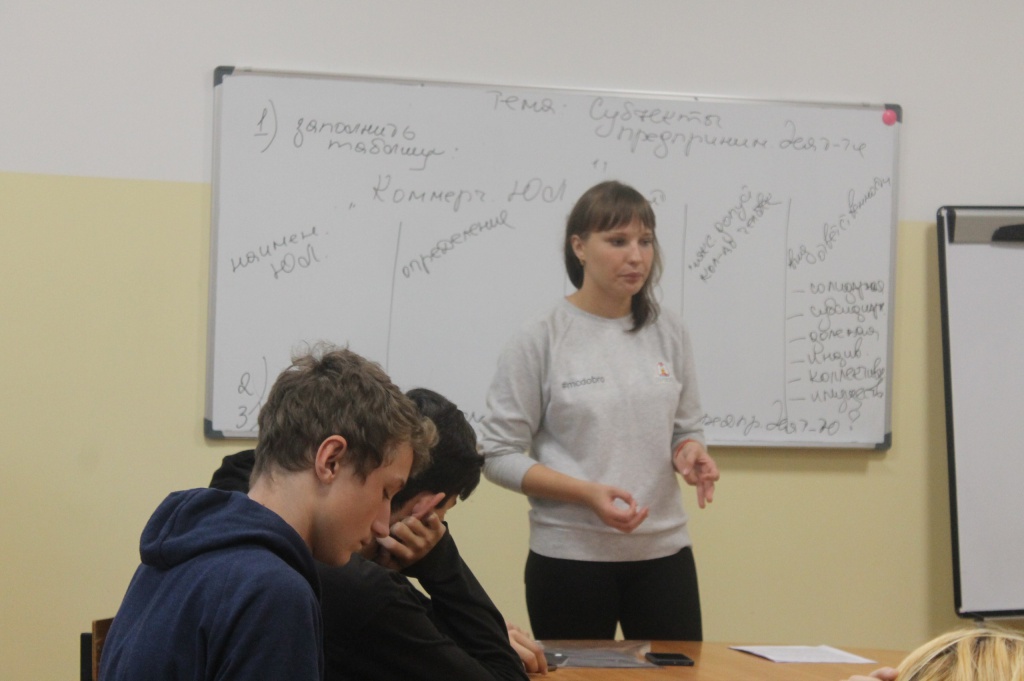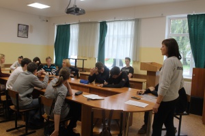 Руководитель молодёжного центра Виктория Полякова отправилась в АНО ПО «Калининградский бизнес-колледж» для привлечения новых волонтеров. Участниками встречи стали студенты 1 курса трёх групп различных профессий - более 60 человек.