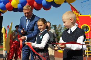 Сегодня Александр Ярошук торжественно открыл игровую детскую площадку, построенную в рамках совместного проекта городской администрации и благотворительного фонда «Обнаженные сердца», созданного Натальей Водяновой.