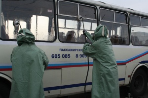 Так, на базе МКП «Калининград-ГорТранс» состоялась тренировка подразделения ГО по специальной обработке транспортных средств. Для организации мобильной станции обеззараживания транспорта была привлечена поливомоечная машина ещё одного муниципального предприятия - «Чистоты». Перемещаясь из «грязной» в «чистую» зону, пассажирский автобус прошёл дозиметрический контроль, а затем – дезактивационную обработку.