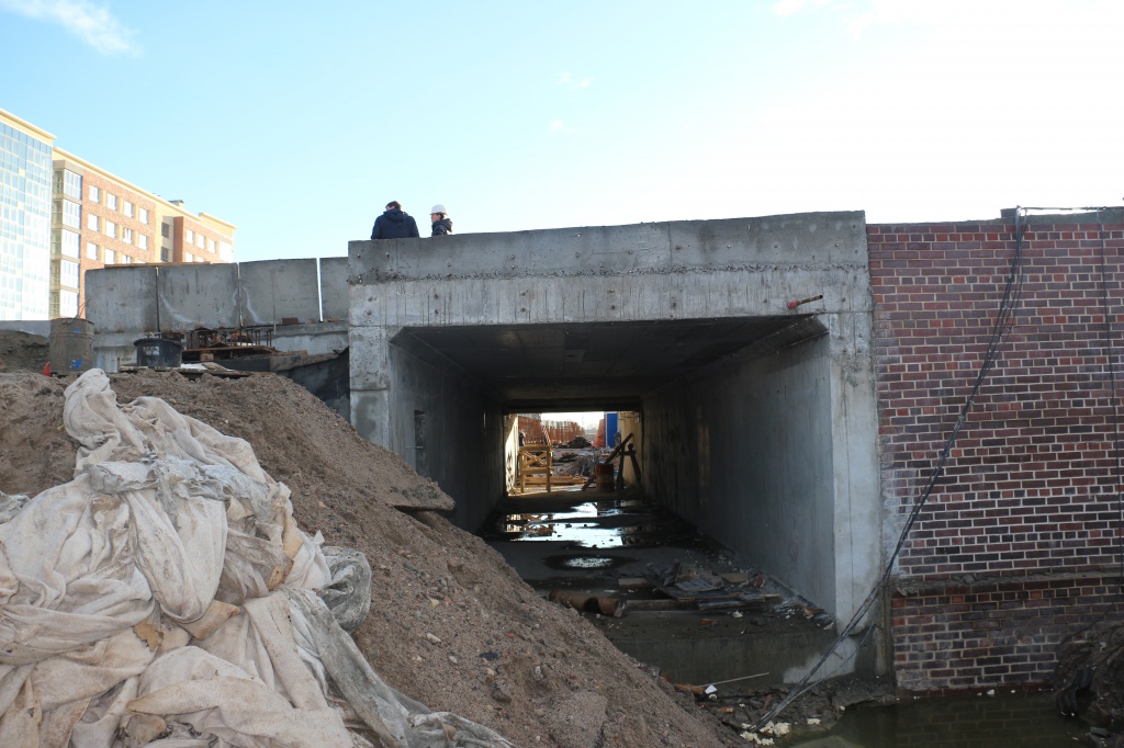 Оба моста на остров Октябрьский давно нуждались в реконструкции, и оба вошли в схему строительства транспортной инфраструктуры к ЧМ-18. В апреле 2016 года был заключен муниципальный контракт началась реконструкция моста Высокого, соединяющего остров с улицами Багратиона и Дзержинского. Генеральным подрядчиком на этом объекте выступает фирма «АБЗ-Дорстрой» из Санкт-Петербурга. Планировалось, что он сможет закончить все работы к маю-июню 2017 года. Но, учитывая пожелание бывшего губернатора и правительства Калининградской области сделать под мостом туннель, связывающий Рыбную деревню с набережной Ветеранов, проект необходимо было откорректировать, поняв предварительно, каким будет этот туннель. В результате к реконструкции строители смогли приступить лишь в начале июня прошлого года, что сказалось и на переносе сроков завершения работ и ввода объекта в эксплуатацию.