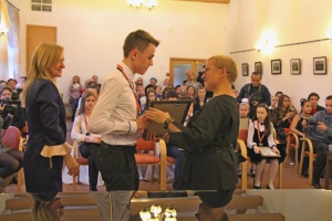 Церемония в школе имени Гофмана завершила чествование одарённых юных калининградцев. В этом году стипендий удостоены более двух сотен наших ребят: 28 – в сфере искусства, 97 – спортсменов и активистов-общественников, 56 – отличившихся в учёбе, 20 – победители олимпиад и конкурсов различных уровней, в том числе всероссийских и международных.