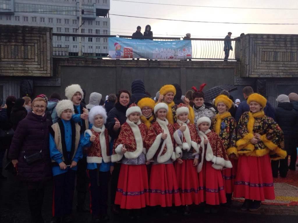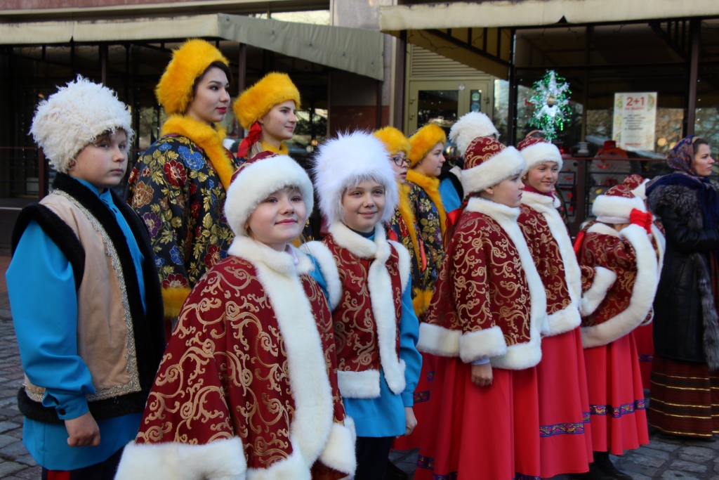 По пути на рождественскую ярмарку «Русский край», которая проводится в Калининграде в 11-й раз, гостей на улице Проф. Баранова величальными песнями и колядками встретили несколько «застав» детских коллективов, которые собрали за проход сладкую «дань».