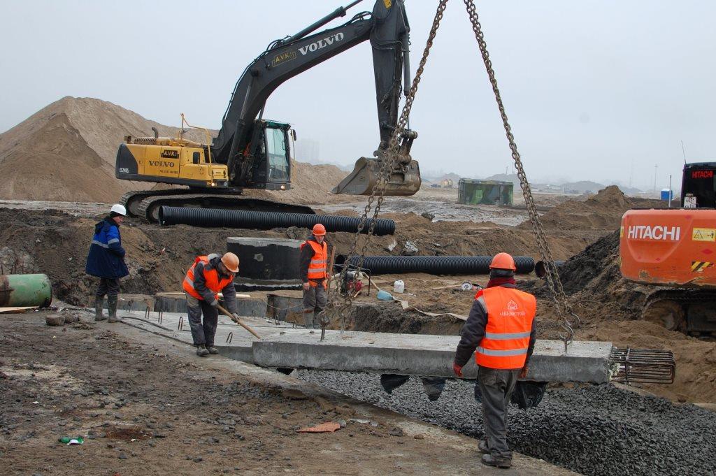 На сегодняшний день выполнены работы по прокладке сети водопровода, ведутся работы по прокладке сети дождевой канализации и по устройству основания под дорожную «одежду».