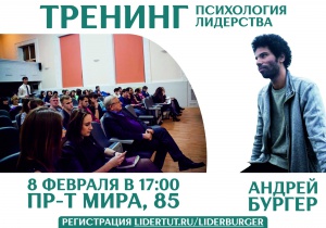 8 февраля в 17.00 по адресу: пр-т Мира, 85 состоится тренинг «Психология лидерства» от юриста, культуролога и философа Андрея Бургера.