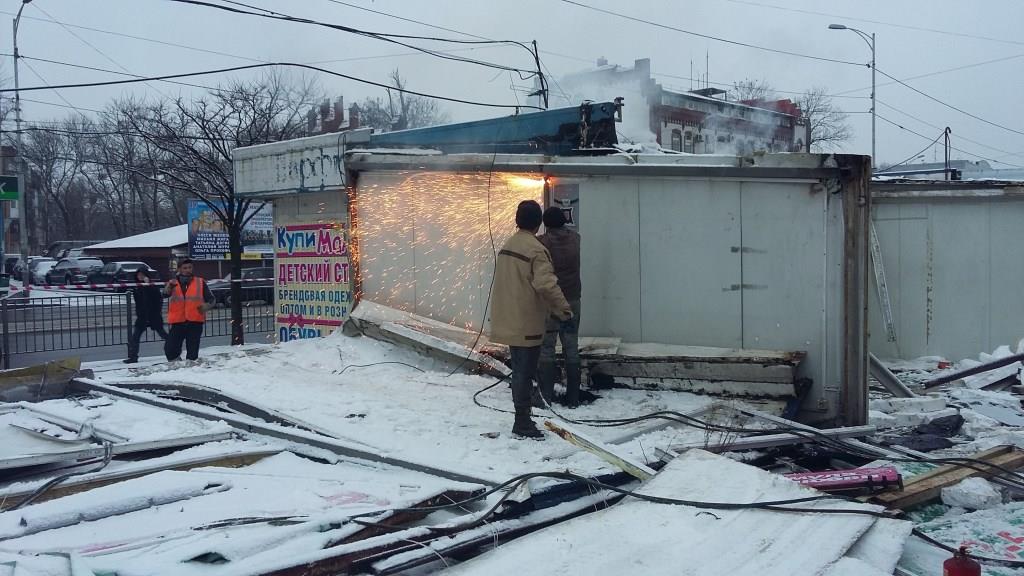Сегодня были демонтированы нестационарные торговые объекты, расположенные вдоль улицы Черняховского – до пересечения с ул. Пролетарской.