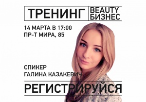 14 марта в 17 часов отдел добровольческих, лидерских программ, предпринимательства и профориентации молодежи МАУ «Молодежный центр» (пр-т Мира, 85) проведёт тренинг BEAUTY БИЗНЕС от Галины Казакевич.