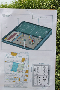 Универсальная площадка будет состоять из двух частей - детской и спортивной. На первой появится синтетическое покрытие, современное игровое оборудования (детский игровой комплекс, качели, песочный дворик, скамейки). На спортивной - ворота для мини-футбола, баскетбольные щиты и стойки для игры в волейбол. Также будут выполнены работы по благоустройству и освещению территории. Общая площадь сооружения составит 1.800 кв.м.