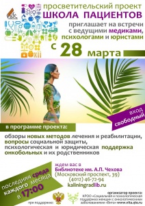 28 марта в 17.00 в Библиотеке им. А.П. Чехова состоится очередная встреча в рамках просветительского проекта «Школа пациентов», ориентированного на онкозаболевания.