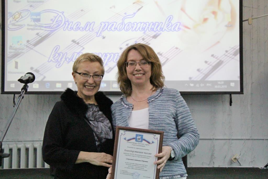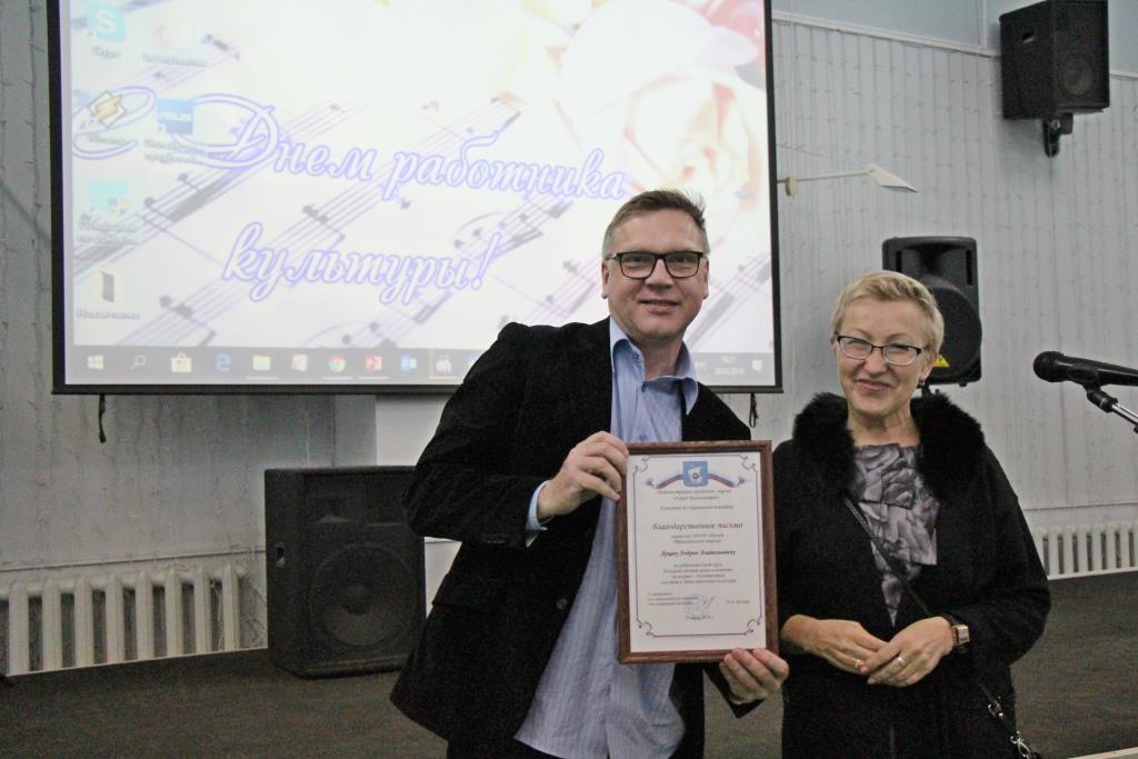 Начальник управления культуры Марина Ядова, вручая награды 16 директорам музыкальных школ, Домов культуры и других учреждений, напомнила, что ежегодная церемония проводится в разных местах: в прошлом году, например, такой площадкой стал музей «Фридландские ворота». Это позволяет не только придать новизну приёму, но и даёт возможность руководителю учреждения достойно представить его коллегам.