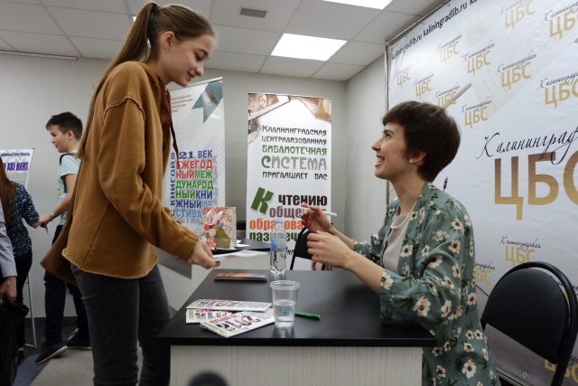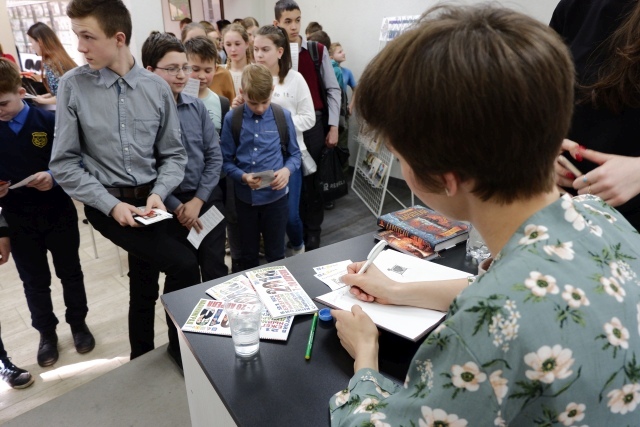 В субботу, 7 апреля, Международный книжный фестиваль «С книгой в XXI век» начался встречей с молодым писателем из Москвы, работающим в жанре фэнтези – Екатериной Соболь. На встречу с ней пришли любители фантастического жанра в целом и фанаты книжной серии «Дарители».