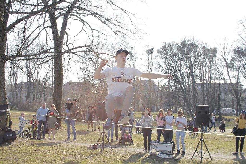 В завершении праздника команда «KoenigSlack» под руководством Дмитрия Шнырика провела финальный обучающий урок по слэклайну. Гостям продемонстрировали базовые трюки, рассказали о том, из чего состоит обучение по направлению и сколько времени потребуется обычному человеку, чтобы научиться делать такие же трюки, стоя на стропе. И под финал – экстремальный триклайн от калининградских спортсменов, парные прыжки и показательная шоу – программа.