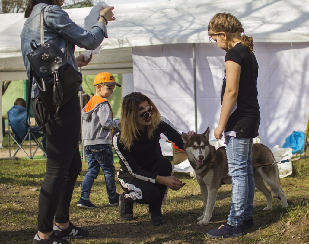 Первыми гостей встречали голубоглазые северные собаки - интерактив от калининградской федерации ездового спорта «Хаски-город». На этот раз все желающие могли не просто подружиться, погладить и сделать фото с понравившимися питомцами, но и получить заряд адреналина и впечатлений, прокатившись на собачьей упряжке по парку! Детей переполнял восторг после экстремальных заездов с пушистыми «моторами». В перерывах между катаниями хаски хором запевали песни и позировали для фото с гостями.