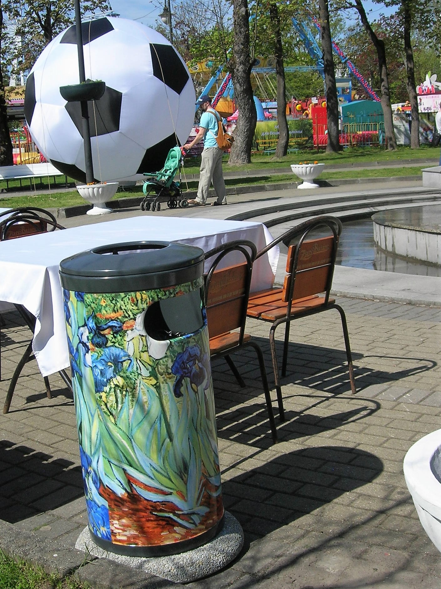 Первая дюжина уже заняла свое место в парке. На них разместили художественные граффити, а на Певческом поле появились ноты и танцующие фигуры. Авторы идеи надеются, что превращение скучных урн в носителей культурного кода создаст в парке такую атмосферу, при которой бросить обертку от мороженого на газон станет совершенно невозможно.