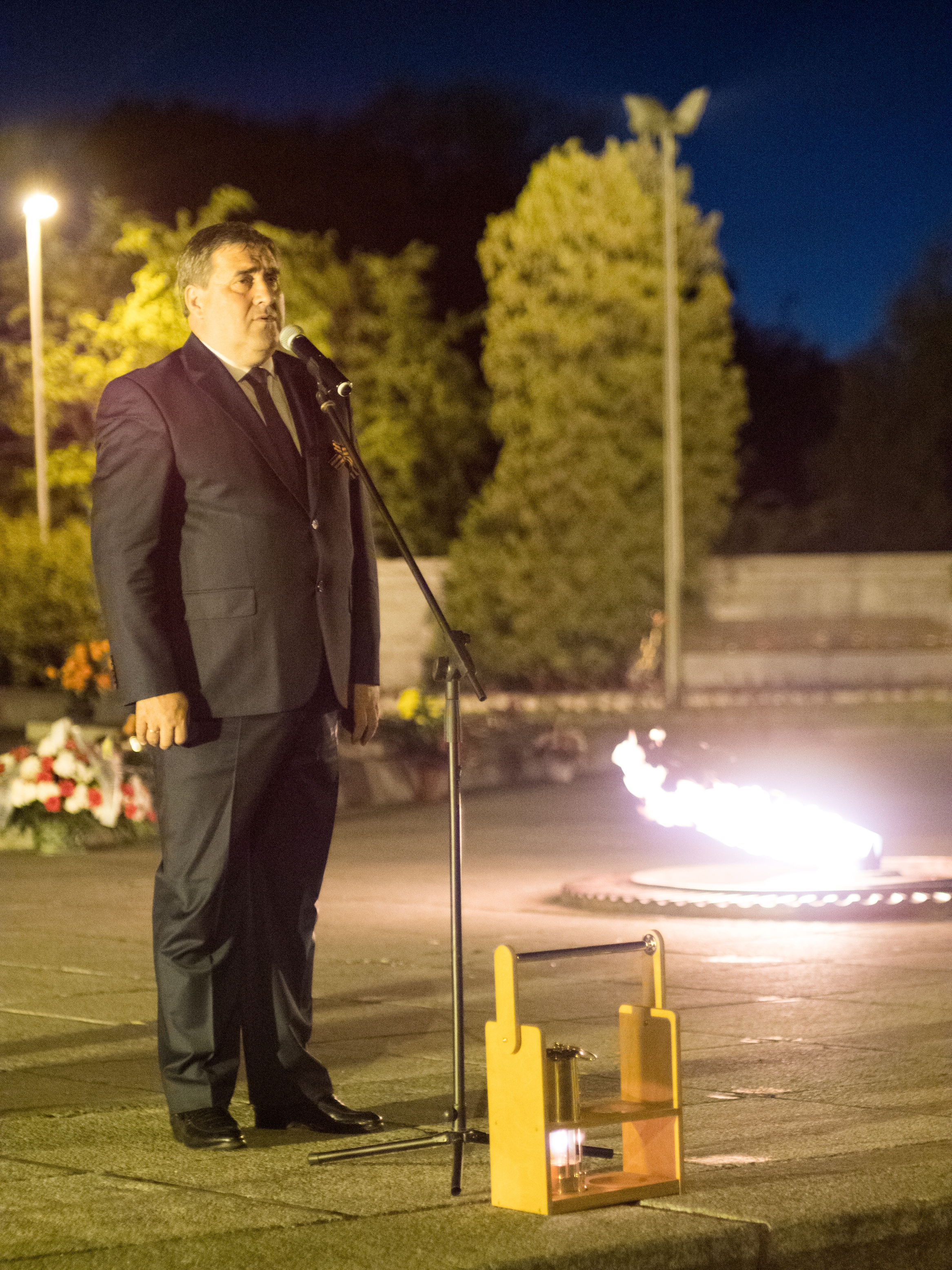 «Не смотря на наступившие сумерки вечер все равно светел. Светел от вечного огня, от чистоты помыслов и ярких сердец. Буквально через несколько часов мы будем отмечать самый прекрасный праздник - День Великой Победы. Победы, которая далась ценой миллионов человеческих жизней. История нас учит многому. Учит тому, чтобы беречь наш хрупкий мир, ради тех, кто сегодня учится в детских садах и школах, ради тех, кому строить будущее нашей великой России», - обратился к собравшимся Алексей Силанов.