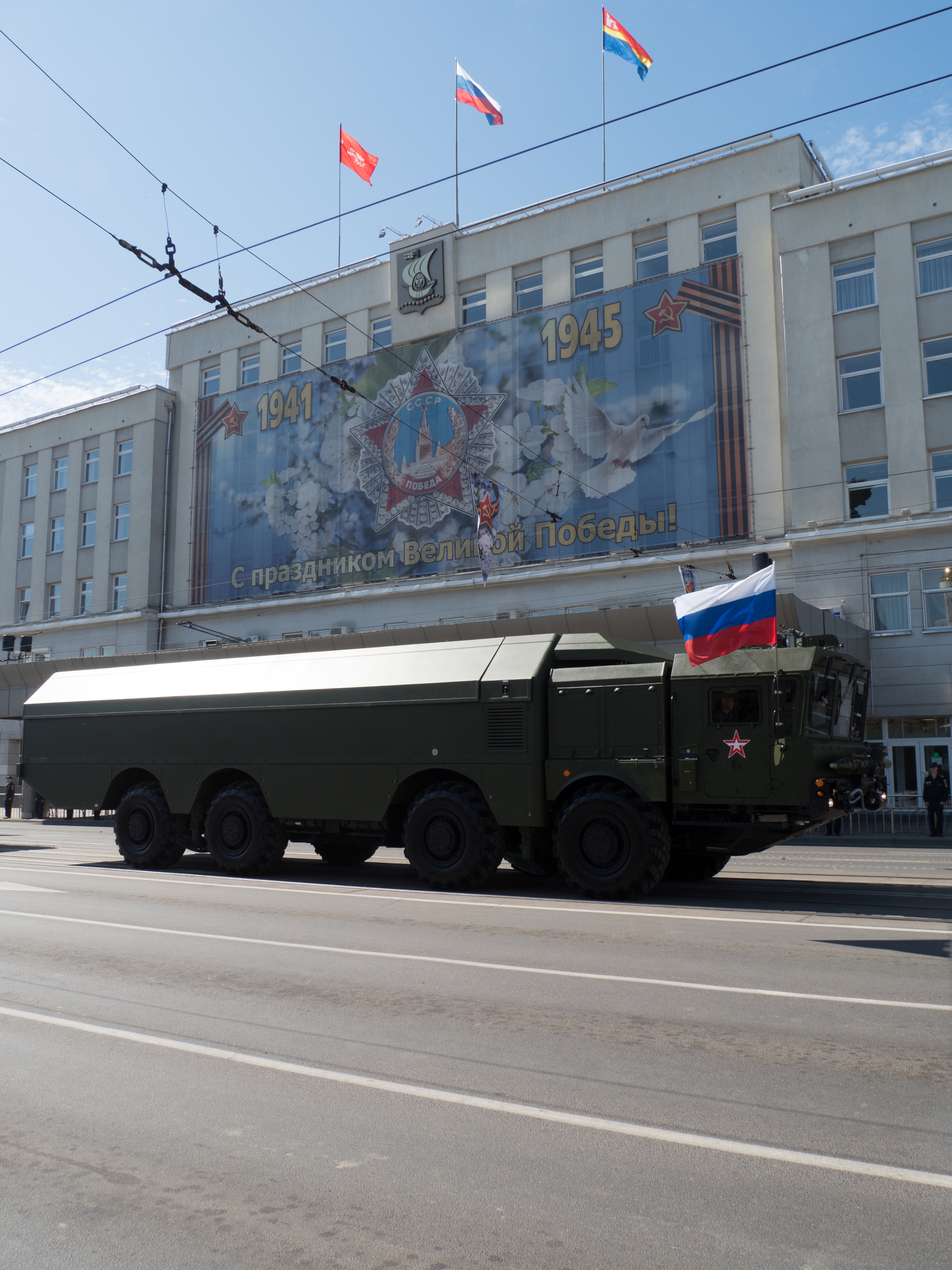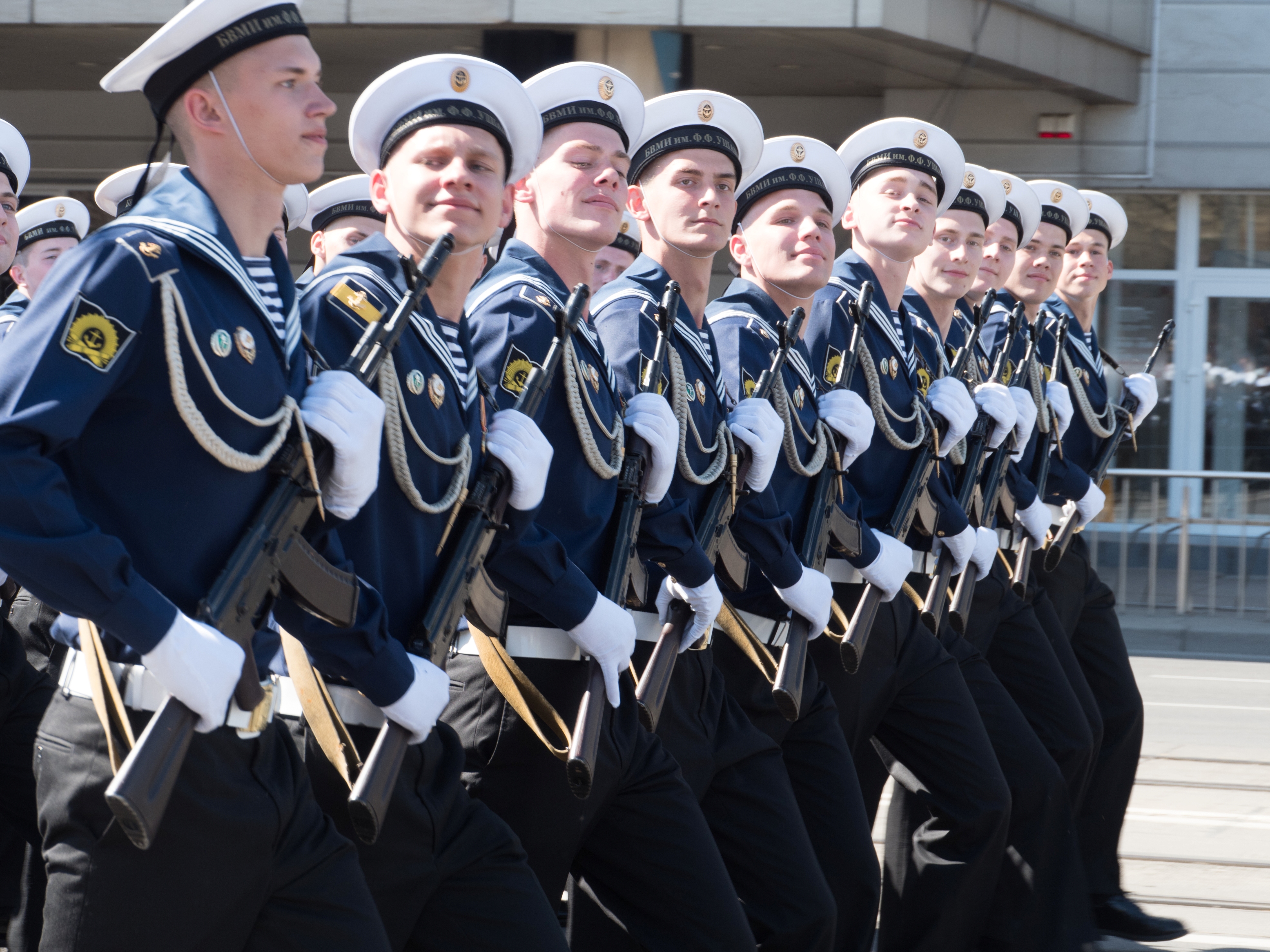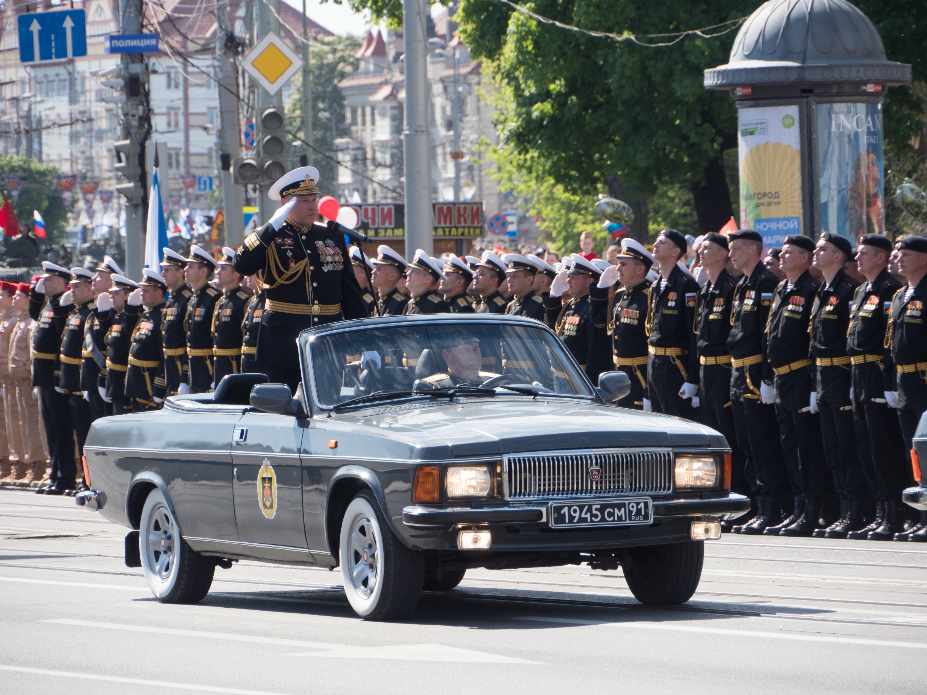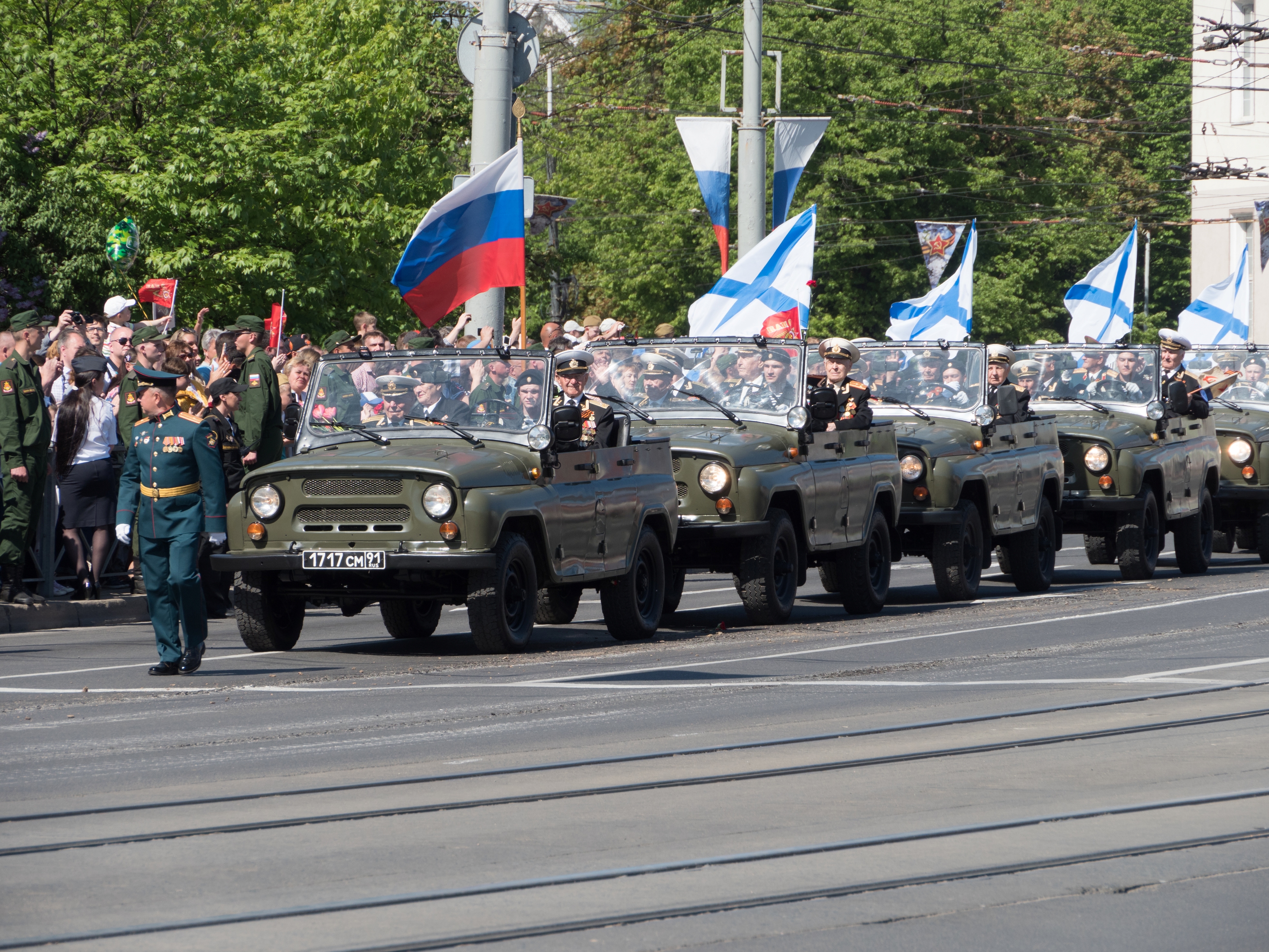 По традиции череду праздничных мероприятий открыл парад на площади Победы. В нем приняли участие порядка 1800 человек, среди которых военнослужащие Балтийского флота, сотрудники силовых ведомств, курсанты, кадеты. Также состоялась демонстрация боевой техники. Всего по главной площади Калининграда в составе механизированной колонны прошло более 60 единиц техники, стоящей на вооружении соединений и воинских частей Балтийского флота. Возглавил колонну техники легендарный танк Т-34, штурмовавший город-крепость Кенигсберг. В этом году впервые в колонну включили боевые машины ракетного комплекса «Искандер-М».