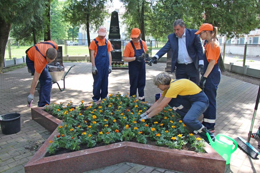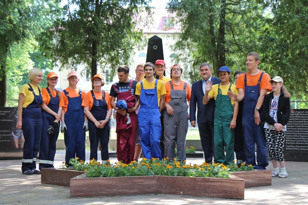 16 мая глава Калининграда Алексей Силанов вместе с воспитанниками Калининградского филиала Советского техникума-интерната высадил цветы на мемориале в микрорайоне Прегольском.