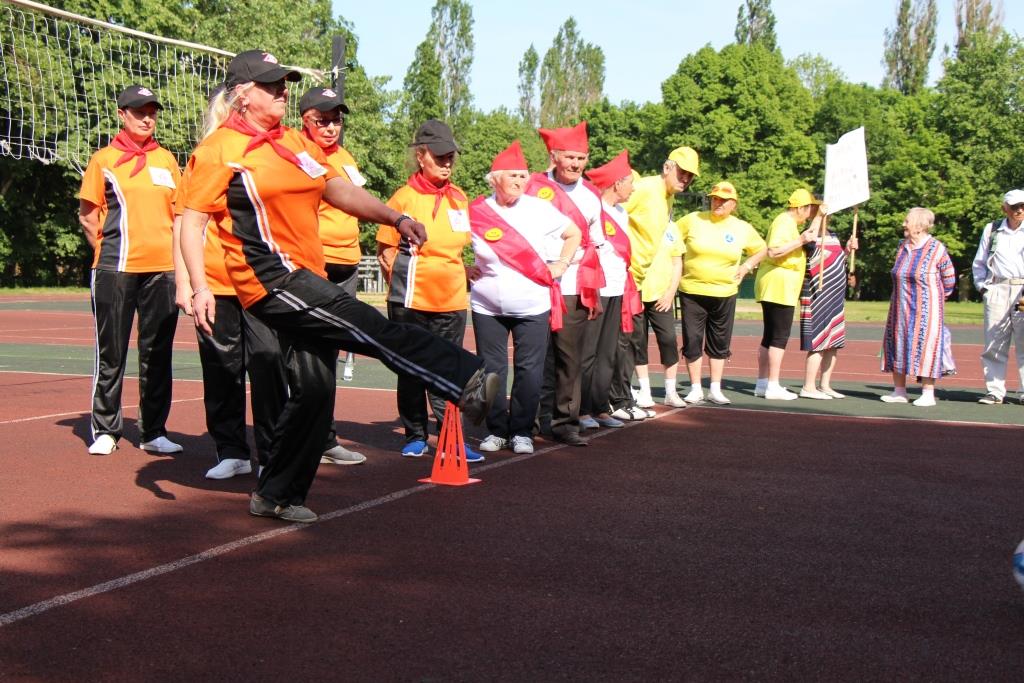 В состязаниях приняли участие семь команд. Названия красноречиво свидетельствуют о бодрости и здоровом чувстве юмора участников: «Одуванчики», «Октябрята» «Дружба» «Солнышко», «Непоседы», «Одуванчики», «Наравне со всеми», «Хорошее настроение». Пенсионеры в пилотках, галстуках, с плакатами и речёвками смогли воссоздать задорную атмосферу спортивного праздника в пионерском лагере.