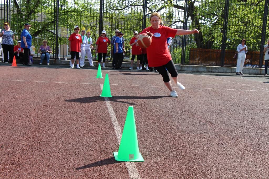 После приветствий все участники отшагали дистанцию с палками для скандинавской ходьбы, метнули дротики в мишень, постарались попасть в ворота для мини-футбола, прошли на баскетбольной площадке «змейку» с мячом.