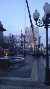 Как сообщили в управлении культуры городской администрации, они начались с установки ели на площади Победы, которая пройдет в несколько этапов: сначала будет сооружен каркас высотой 30,5 метра, затем специалисты начнут прикреплять шесть тысяч хвойных веток. На дерево повесят полторы тысячи шаров - тысяча по 150 мм и 500 шаров по 200 мм, 500 бантов и 100 гирлянд. Макушку увенчает полутораметровая «Полярная звезда». Монтаж и подключение ели специалисты завершат к 17 декабря. После этого 18-метровая ель будет установлена на площади у Дома Советов.