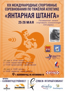 25 - 26 мая 2018 года на базе спортивной школы олимпийского резерва по силовым видам спорта в Калининграде стартуют международные спортивные соревнования по тяжелой атлетике «Янтарная штанга».