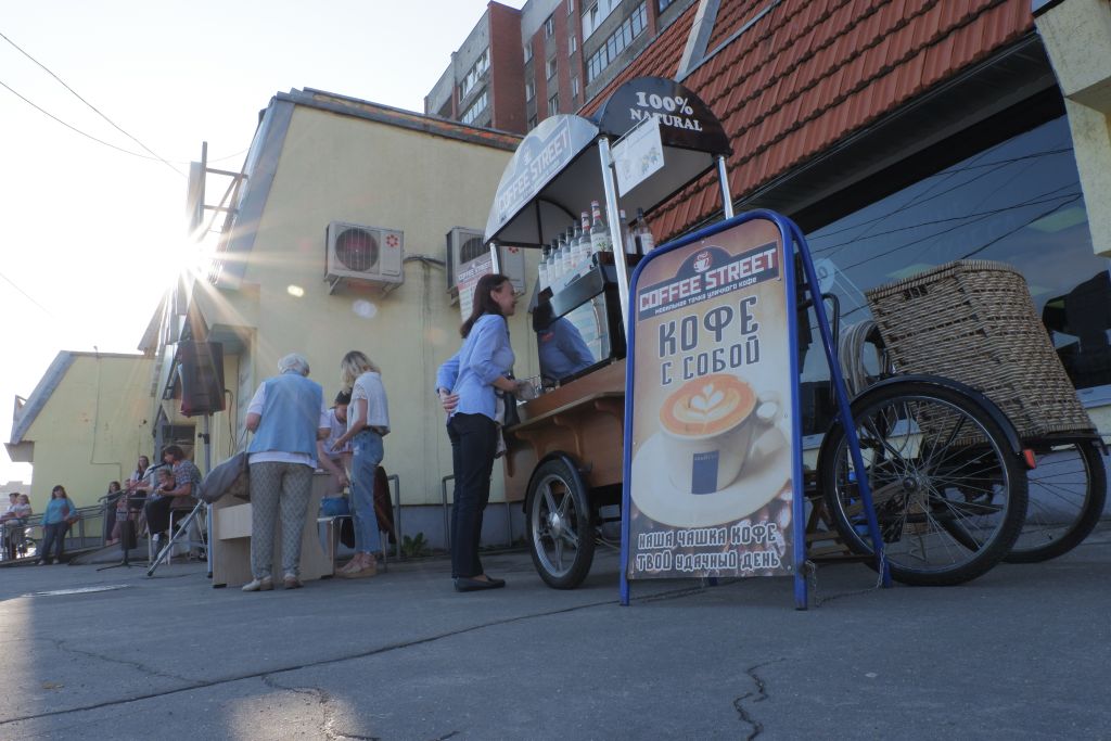 Гости, ожидающие танцев и общения с художниками, разместились в обновлённой лаунж-зоне на балконе, наслаждаясь прояснившимся небом и кофе с капкейками.