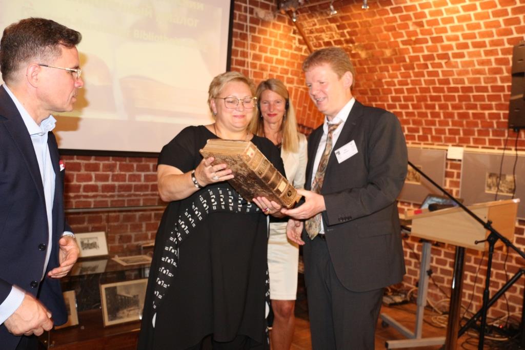 Эти книги поистине являются вековыми музейными ценностями, а уникальная международная деятельность библиотек, в результате которой драгоценные экспонаты возвращаются на родину – объединяет страны, просвещенных людей не только в исследовательском, научном плане, но и в общечеловеческом смысле. Об этом, получив книги от немецкой стороны, сказала генеральный директор Новгородского объединенного музея-заповедника Наталья Григорьева на VII заседании Германо-Российского библиотечного и музейного диалога, прошедшего сегодня, 29 мая, в музее «Фридландские ворота».
