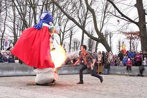 В прощеное воскресенье по православному календарю подростки из клубов ОПК «Центральное» организовали традиционные народные гулянья сразу на нескольких площадках. Так, на улице Воздушной устроили представление с проводами зимы и встречей весны. На красочное действо, организованное молодежью, подтянулись посмотреть и поддержать его и жители микрорайона. Особенно всем понравилась яркая театрализованная программа. Как и положено на празднике, все веселились от души - водили хоровод вокруг чучела Масленицы, прыгали над костром, приговаривая «Гори, гори ясно», состязались в метании метел, беге в мешках, забрасывании лаптей в корзину, мерились силой в перетягивании каната и поднятии гири.