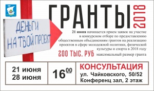 21 июня начинается прием заявок на участие в конкурсном отборе по предоставлению общественным объединениям грантов в форме субсидий из бюджета Калининграда на реализацию социальных проектов в сфере молодежной политики, физической культуры и спорта в 2018 году.