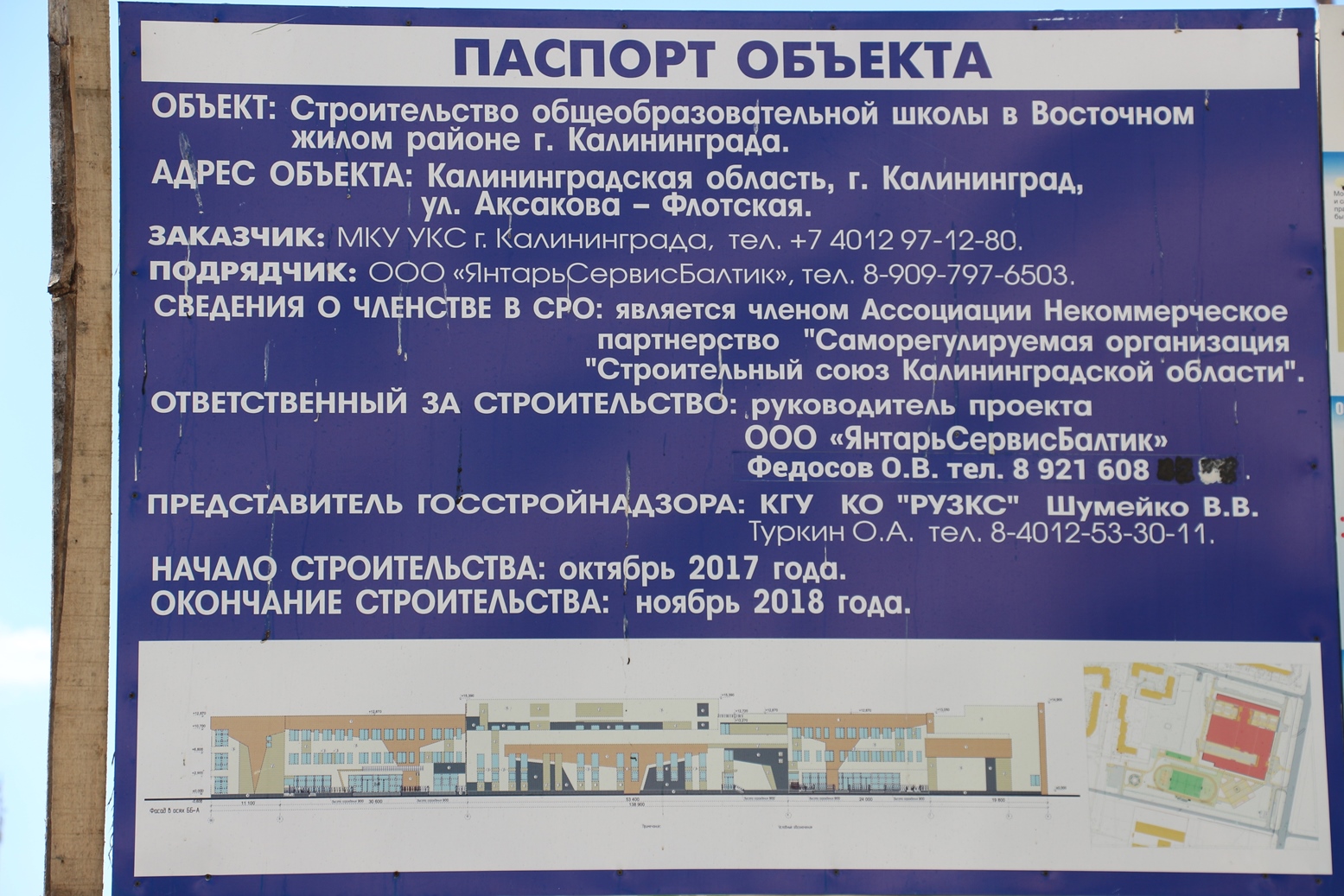 Полное название объекта: «Строительство общеобразовательной школы в Восточном жилом районе г.Калининграда»