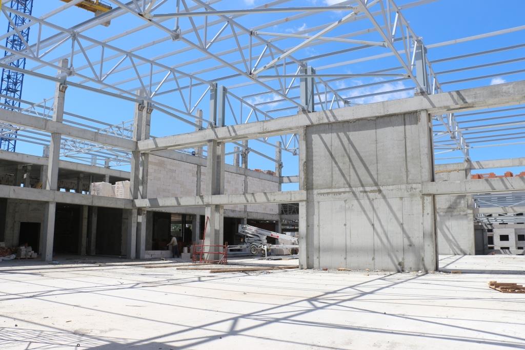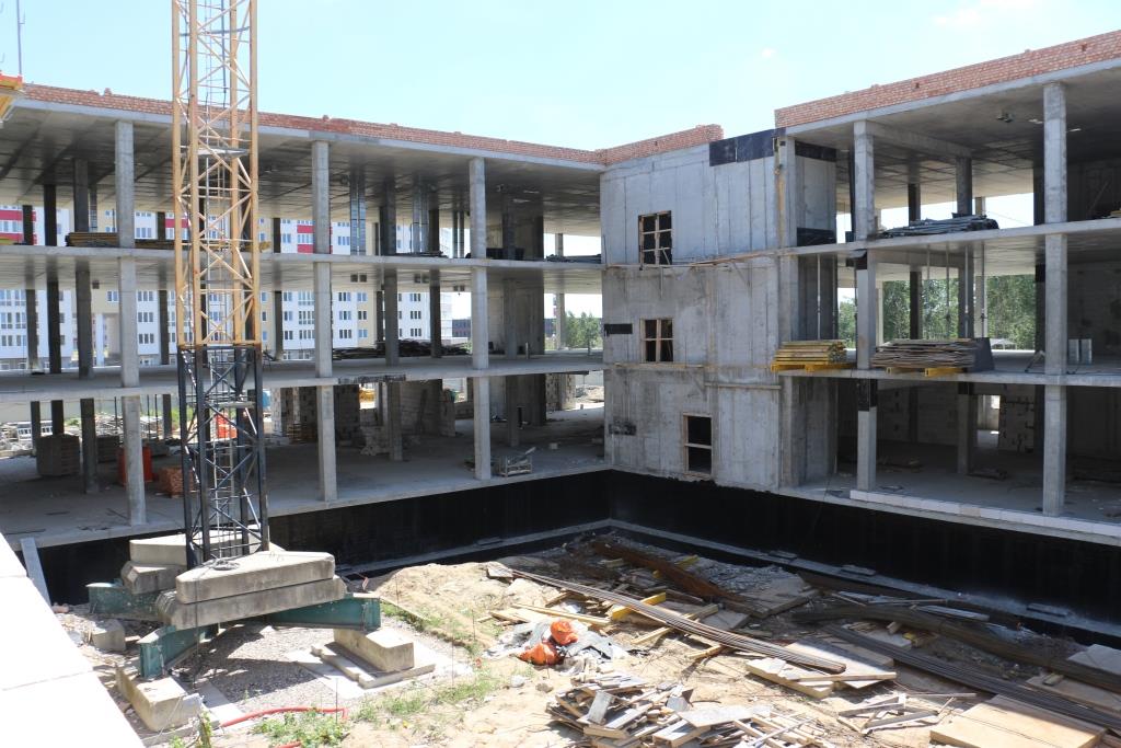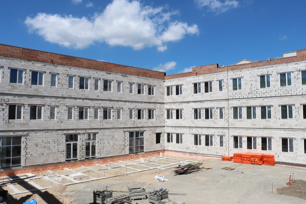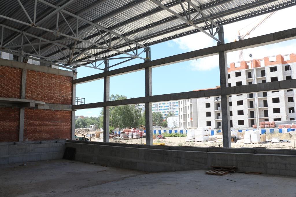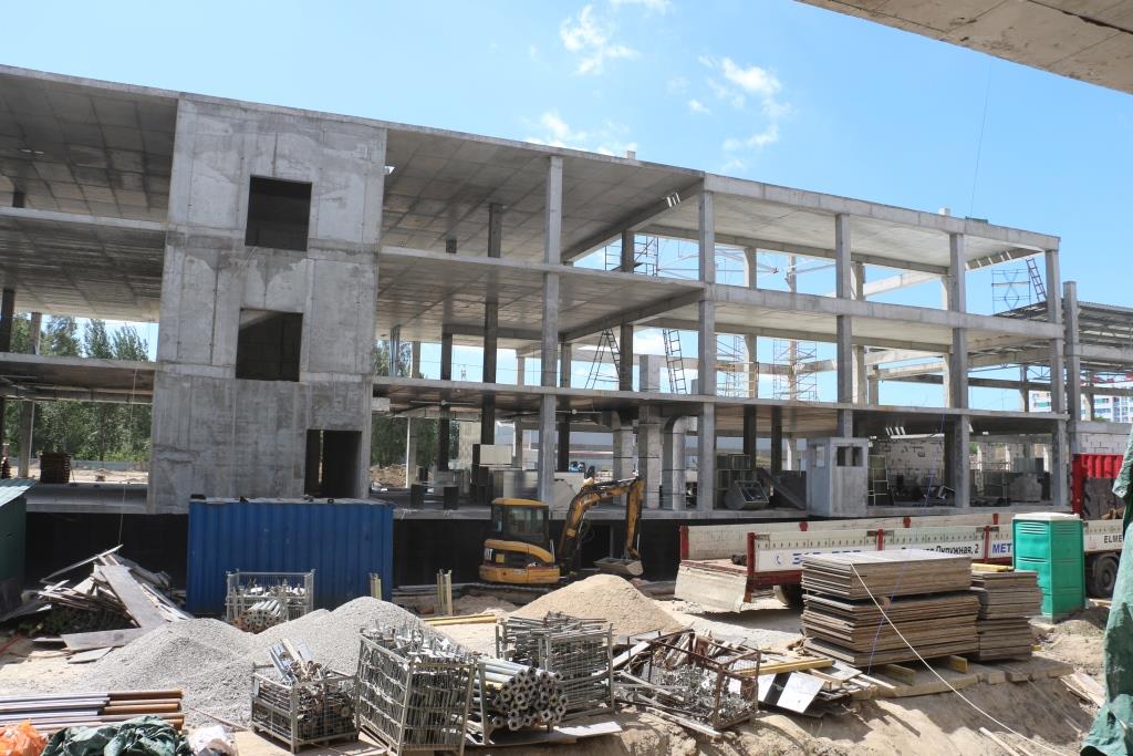 На территории школы появятся сооружения физкультурно-спортивного направления, позволяющие заниматься различными видами спорта – играть в футбол, волейбол, баскетбол, проводить массовые мероприятия для жителей микрорайона и города. Сегодня практически все инженерные коммуникации к объекту подведены, на некоторых блоках заканчивается монтаж строительных конструкций на уровне третьего этажа. Активно ведется работа по подготовке инженерных систем для бассейнов. По физическим объемам работы на данный момент выполнены на 27%.