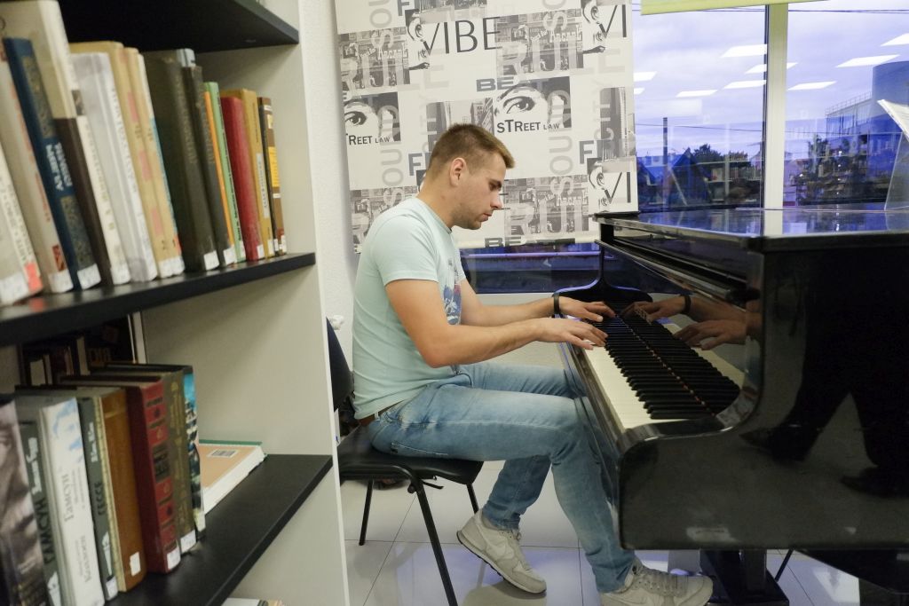 Людмила Васильевна творческими работами под общим названием «Память воды» воссоздаёт гобелен XI века, копируя с точностью все детали. На сегодня ею созданы 45 полотен из 74 листов оригинала внушительных размеров: 70 метров в длину и 50 сантиметров в ширину. Воду, как источник творчества и уникальную субстанцию, обладающую памятью, и гобелен, как древнейшую рукотворную технику Людмила Елфимова объединила в единую синергетическую конструкцию. Участниками вечера стали и три гостя из Германии. Молодые люди с любопытством заглядывали в окна, пытаясь понять, что происходит в библиотеке почти в 9 часов вечера. Туристы рассказали, что приехали из Гамбурга и у них в городе тоже есть очень интересные библиотеки, но «Чеховка» им не уступает. Однако, «Арт-Бук вечеринка» — это не только встречи с интересными людьми и мастер-классы, но и, конечно, танцы! Библиотекари предложили заграничным гостям поучаствовать в мастер-классе по хастлу. Студия Insight Dance дала второй урок по этому танцу лета. Были и новые пары, которые быстро освоили прогулянный первый урок. Параллельно с танц-классом ребята из Арт-кэмпа осваивали раритетный рояль, создавая музыкальный фон вечера. Участник вечеринки Вацлав, пришедший с бас-гитарой, учился играть на ней тут же, беря уроки у опытных музыкантов.
