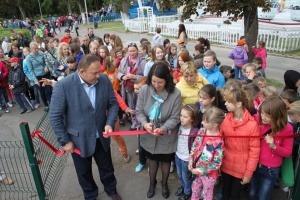 В праздничный день в парке открылся новый аттракцион «Халли-Галли»: красную ленточку перед его входом перерезали Анна Апполонова и заместитель председателя городского Совета депутатов Калининграда Андрей Шумилин.