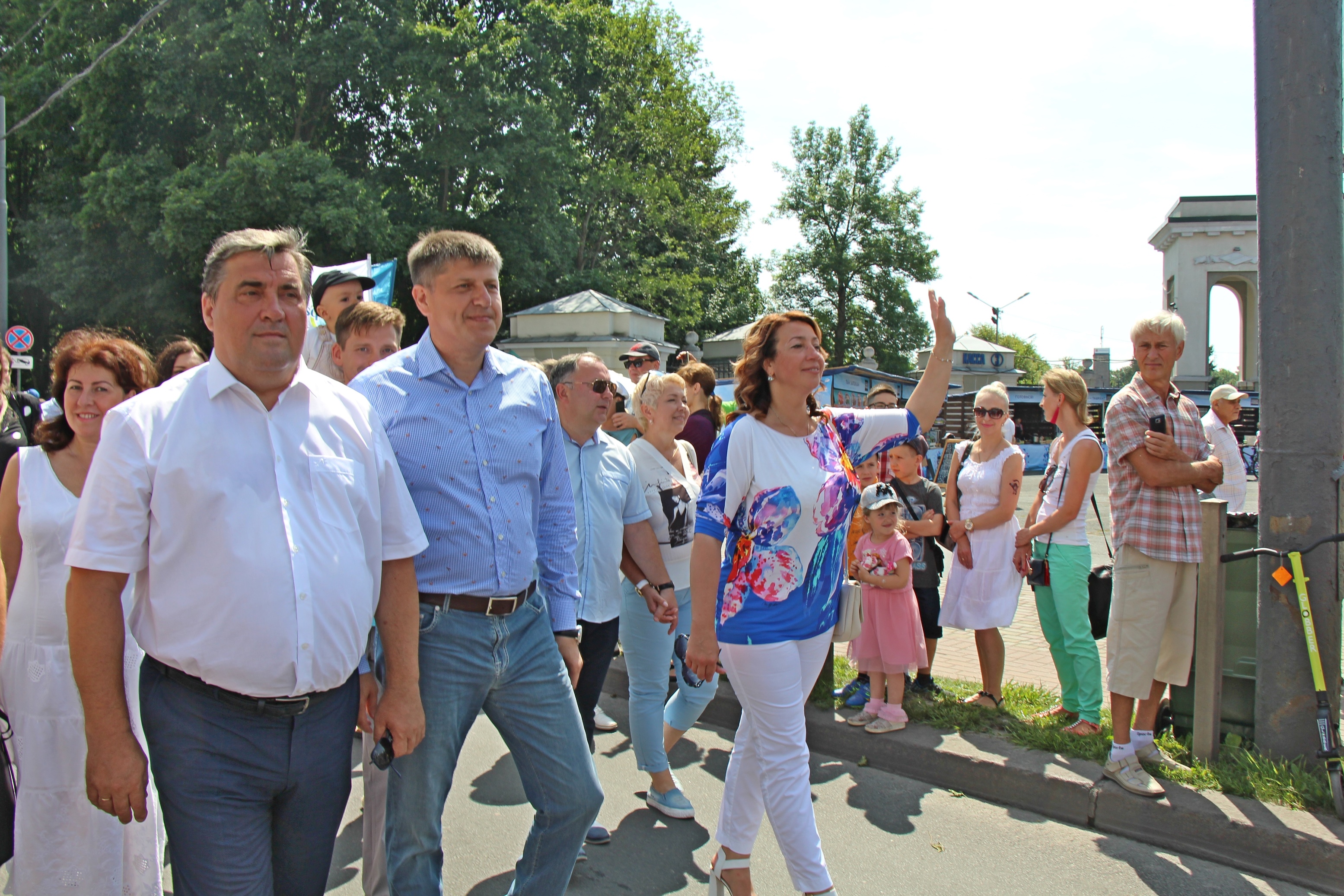 Следом за музыкантами по асфальту и брусчатке проспекта прошли глава Калининграда Алексей Силанов и председатель городского Совета Андрей Кропоткин, депутаты, руководители структурных подразделений муниципалитета.