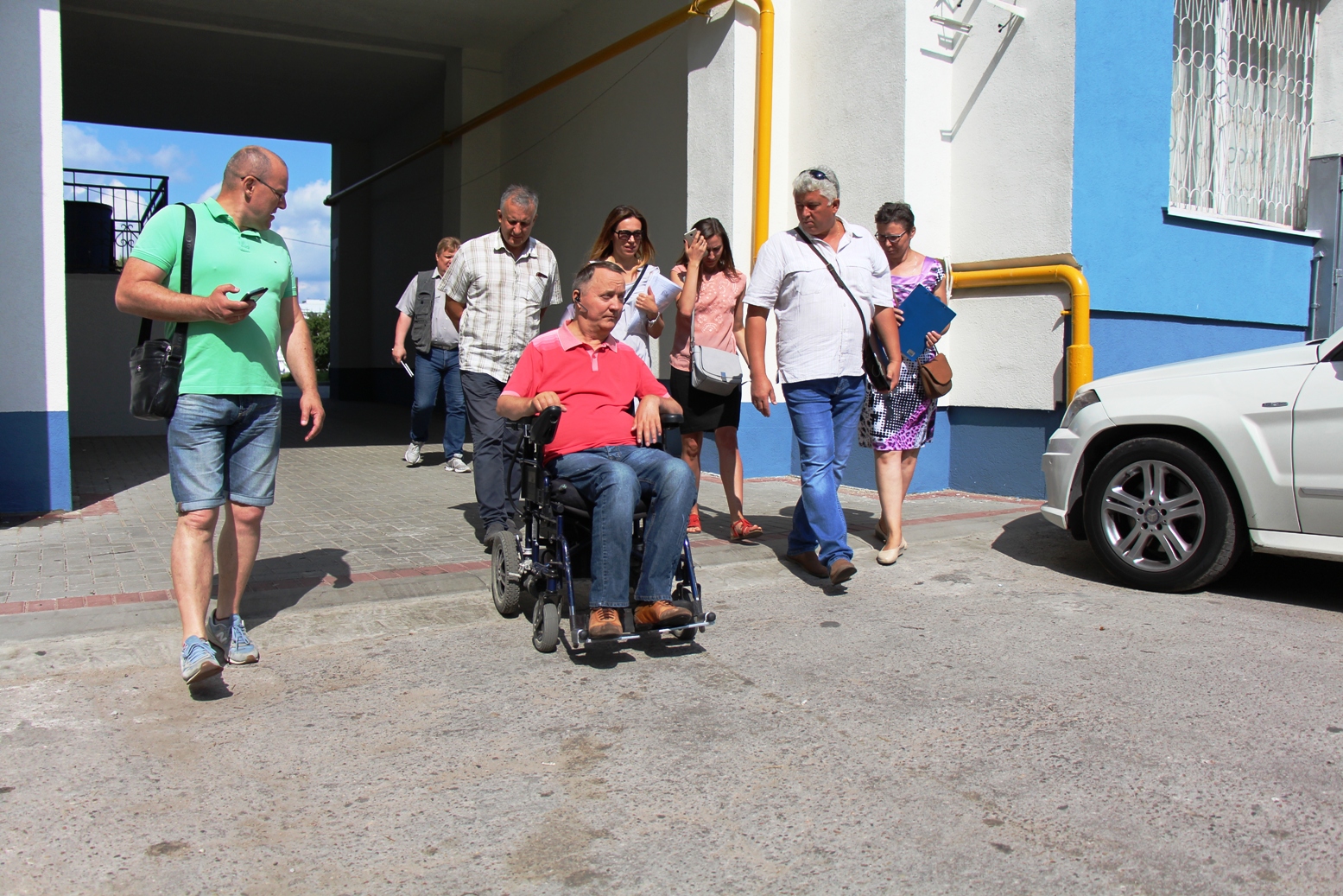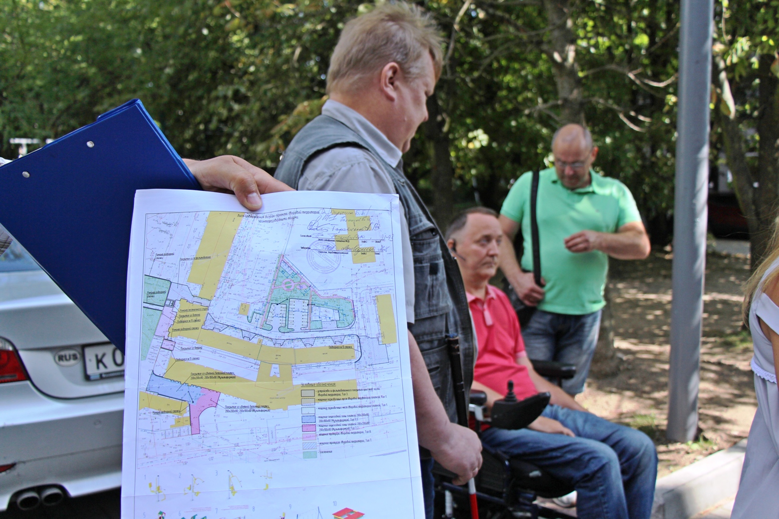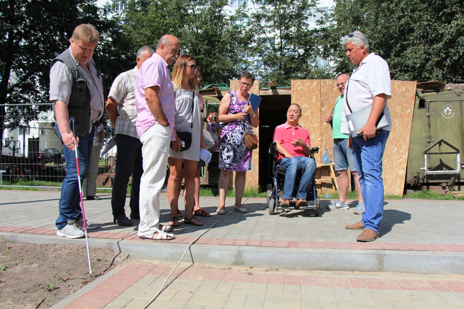 Участники совещания, среди которых Роман Аранин, председатель Калининградской региональной общественной организации инвалидов «Ковчег»; Игорь Бирилов, председатель Калининградской городской местной организации Всероссийского общества слепых протестировали результаты благоустроительных работ во дворе и окрестностях.