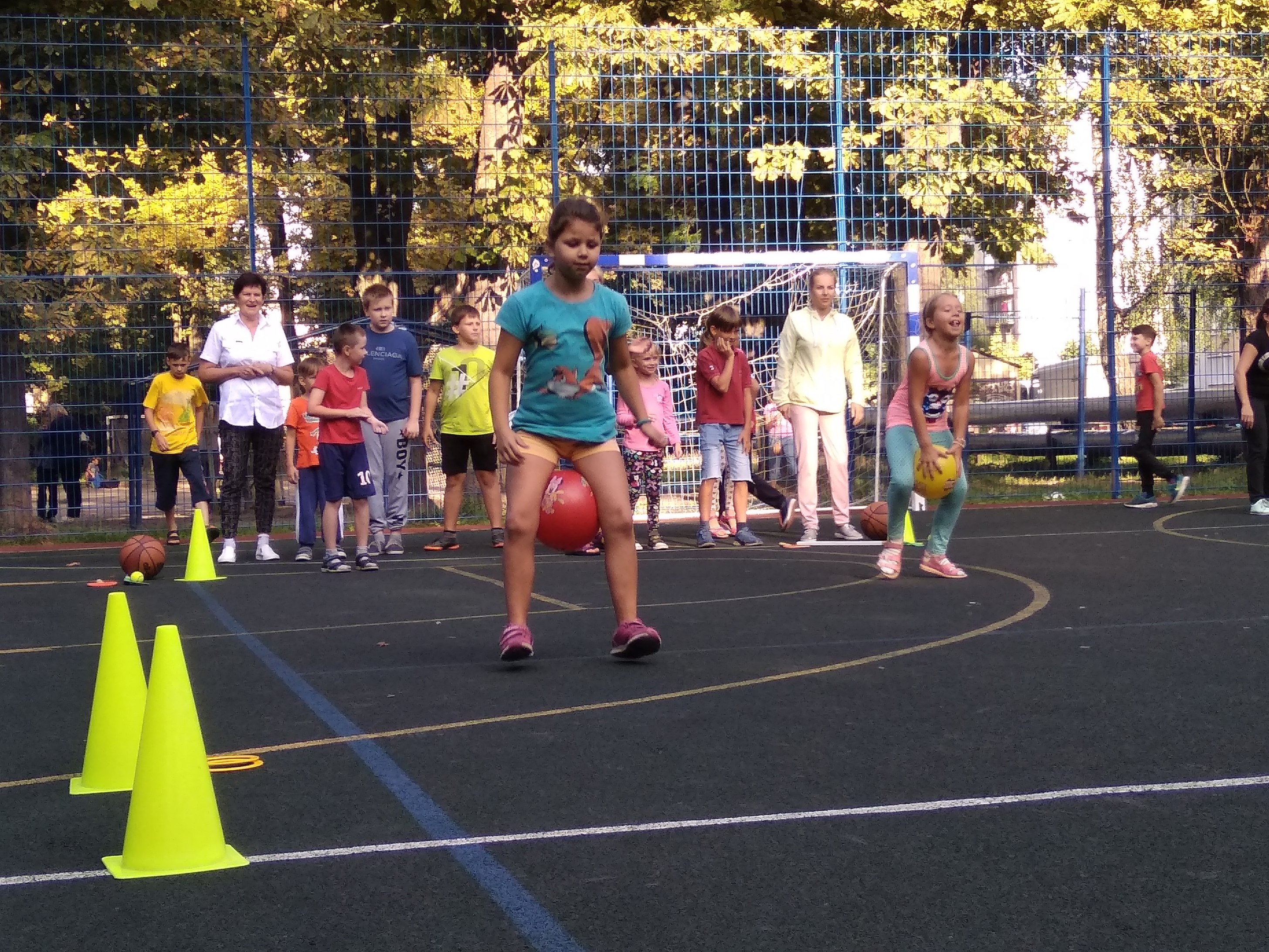 Открыла мероприятие ведущий специалист отдела физической культуры и спорта администрации города Оксана Гузенко, которая поприветствовала собравшихся и представила команды. В веселых спортивных играх приняли участие 3 команды: «Березовая», «Новикова», «Киевская». Команды были названы в честь улиц, на которых проживали участники. Каждая состояла из 7 человек (2 взрослых и 5 детей до 12 лет). Самому младшему участнику было 5 лет. Перед началом веселых игр команды вышли на построение. Далее следовала спортивная программа: бег, прыжки с мячом, ведение баскетбольного мяча и ведение теннисного мяча хоккейной клюшкой, прыжки через скакалку, подъем туловища, приседания и отжимания от пола. Заключительный этап требовал от участников сосредоточенности, концентрации и умения удерживать равновесие тела. Этим испытанием была стойка на одной ноге с закрытыми глазами. Некоторым удалось простоять не более 10 секунд. Но нашлись и такие, которые стояли стойко, как оловянные солдатики. Таких оказалось немного - по одному участнику из каждой команды. Общее время, показанное лидерами команд, в этом испытании составило 7 минут.