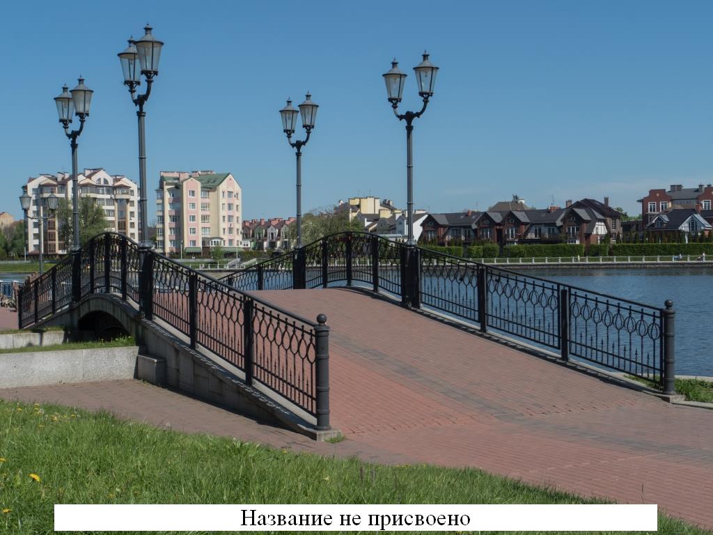 Название пешеходного моста через ручей Голубой, обустроенный фонтанами и расположенный в зоне благоустройства пруда Верхнего – вопрос открытый. Калининградцы проголосовали за то, чтобы присвоить ему наименование «Мост Горбатый», однако топонимическая комиссия решила не торопиться со своими рекомендациями. По четырем другим мостам на Верхнем озере решение топонимическая комиссия приняла без долгих обсуждений.