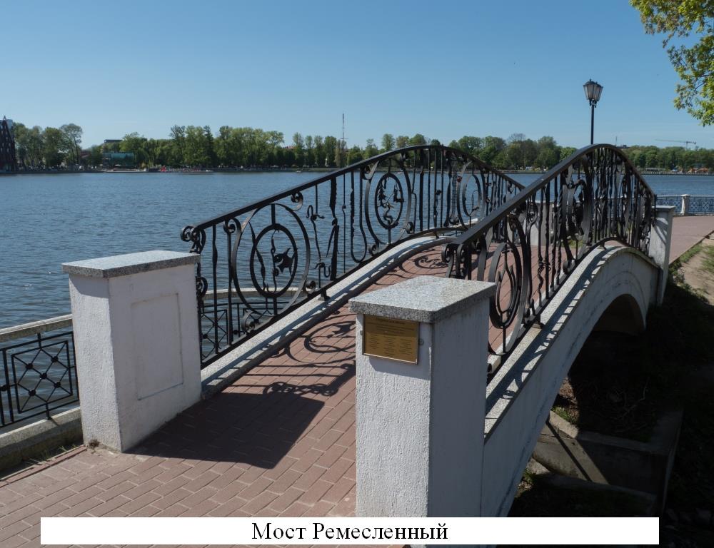 · Пешеходный мост, соединяющий территорию комплекса «Музей Янтаря» с набережной пруда Верхнего предложено назвать - «Мост Ремесленный».
