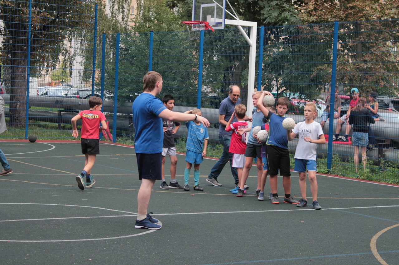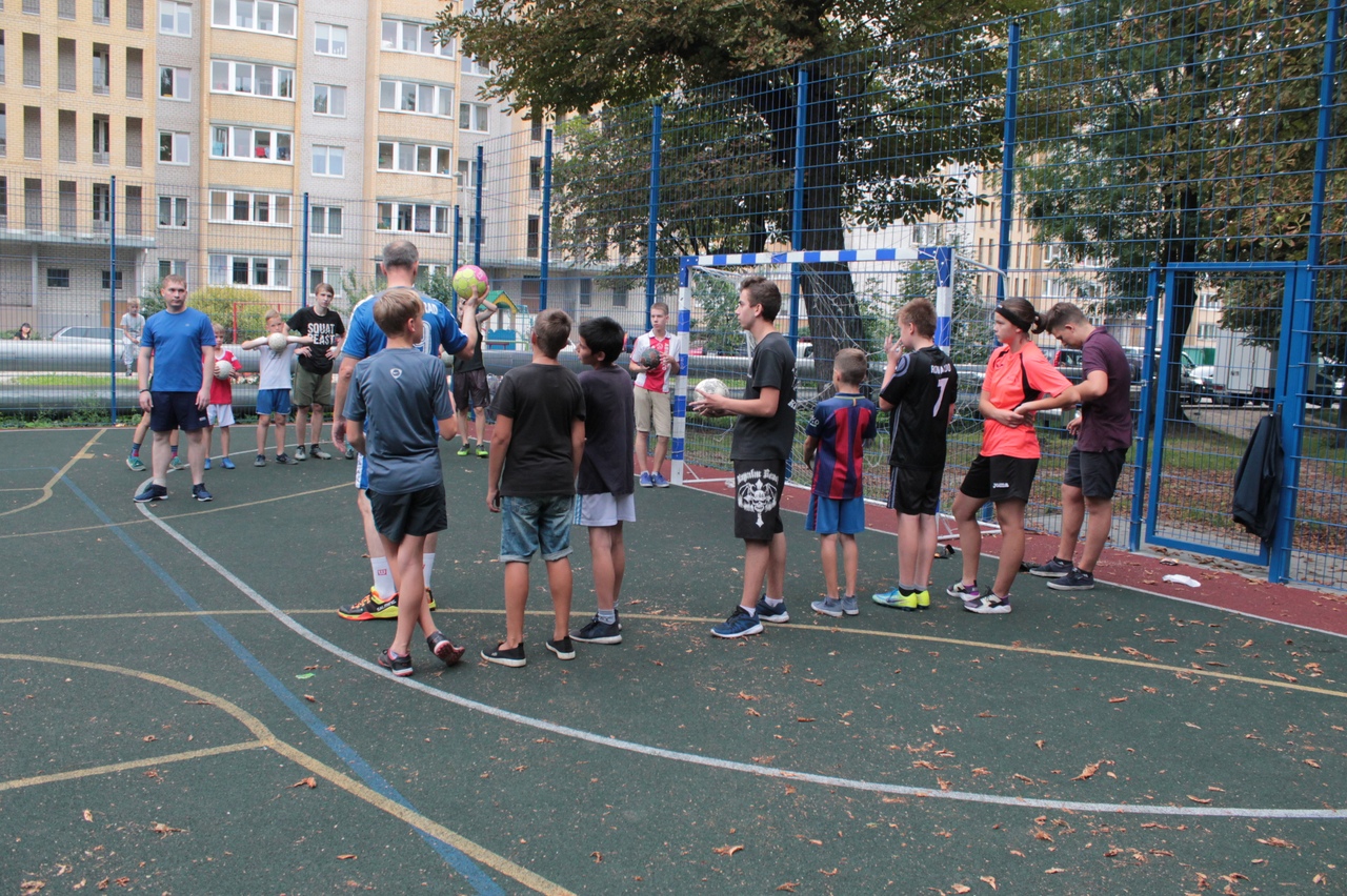 Тренировки по гандболу проводили: тренер Вадим Петросян, мастер спорта по гандболу Дмитрий Зайцев и вице- президент федерации гандбола Калининградской области Александр Ястремский. Участниками спортивного мероприятия стали ребята в возрасте от 8 до 15 лет, которые ждали эту тренировку еще с середины лета, когда на этой самой площадке перед ними играли чемпионы России по гандболу среди юношей 2005 г.р. – воспитанники СШОР по игровым видам спорта г. Протвино Московской области.