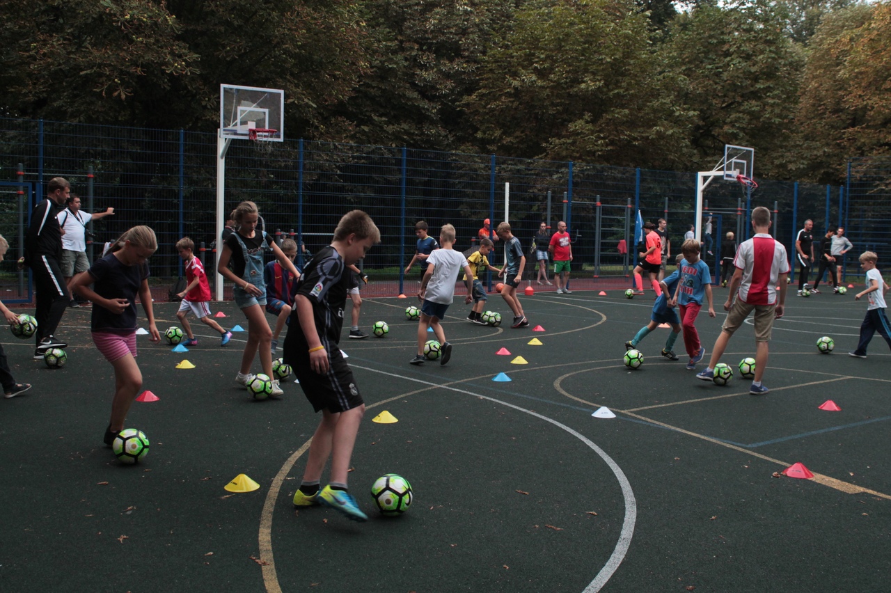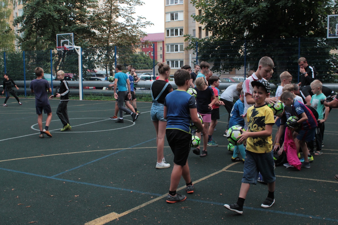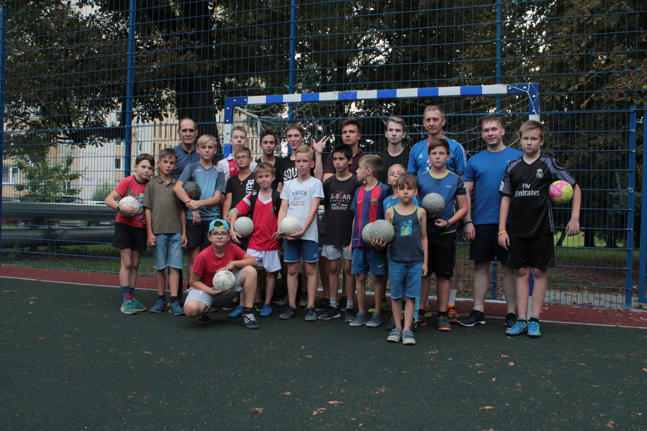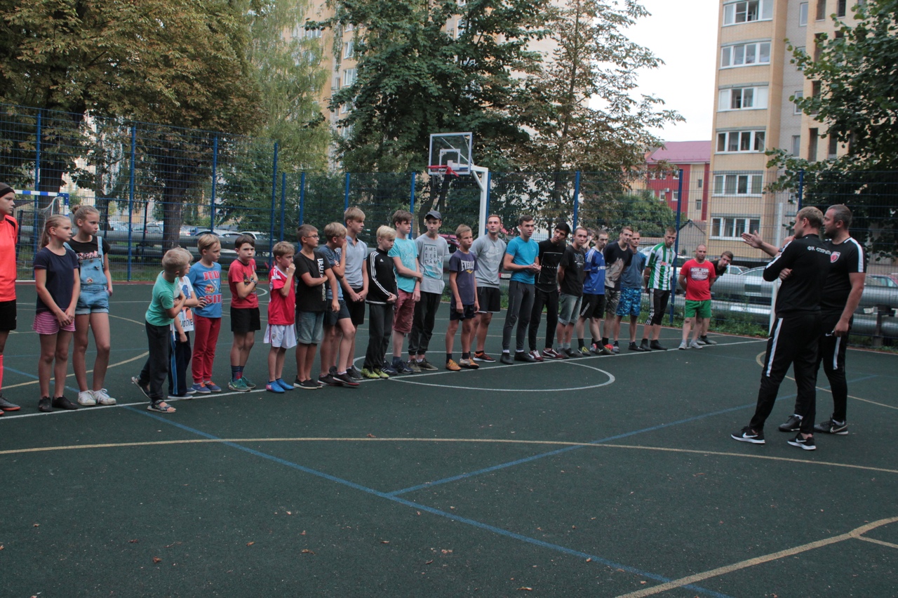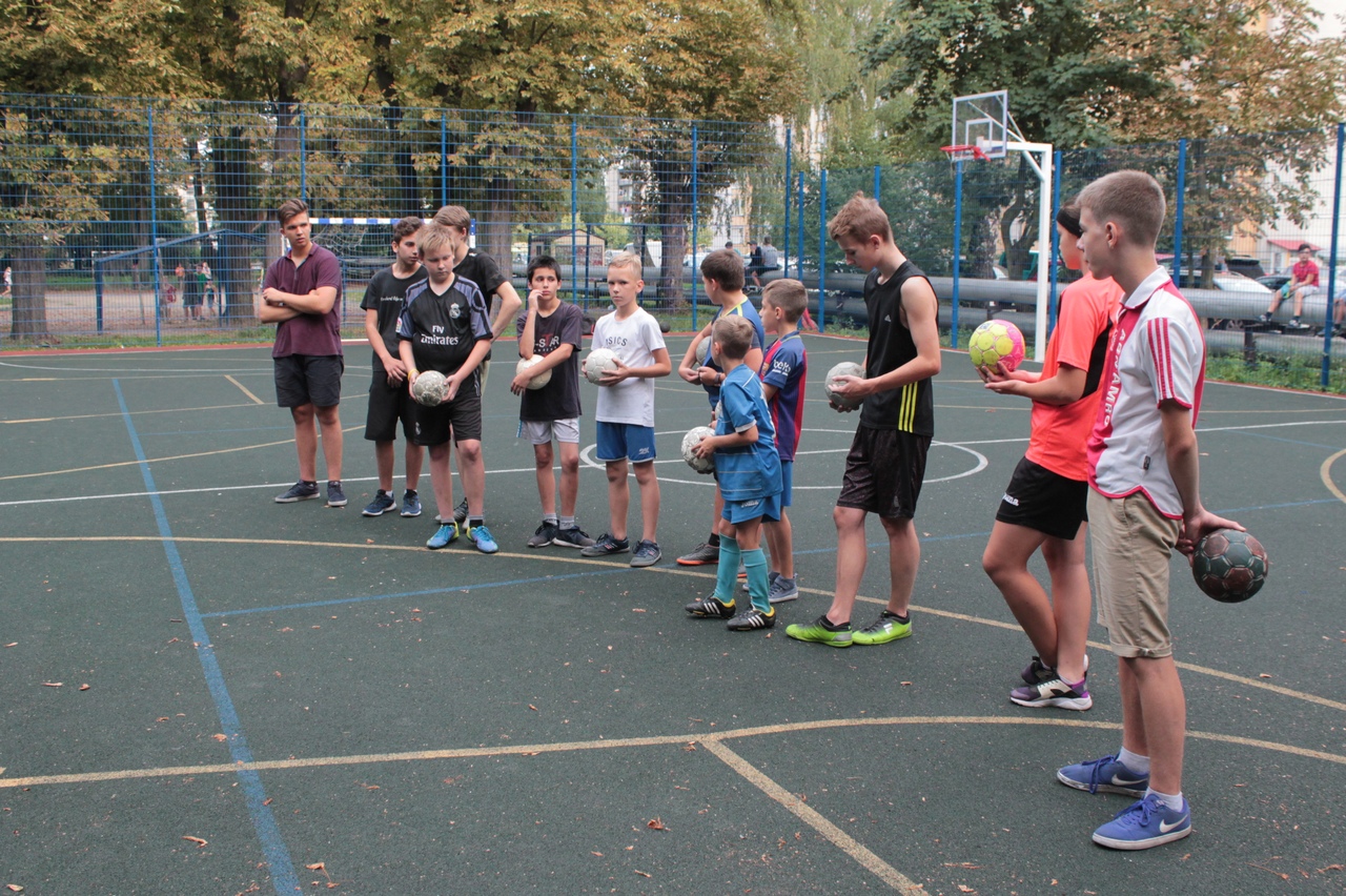 Сразу после окончания игры в гандбол на площадке началась тренировка по футболу, которую провели тренеры Алексей Енин и Юрий Хусиянов. После построения, тренеры подели ребят на две группы и стали обучать правилам и технике владения мячом, в том числе жонглированию, а затем ребята сыграли в футбол в своих возрастных группах.
