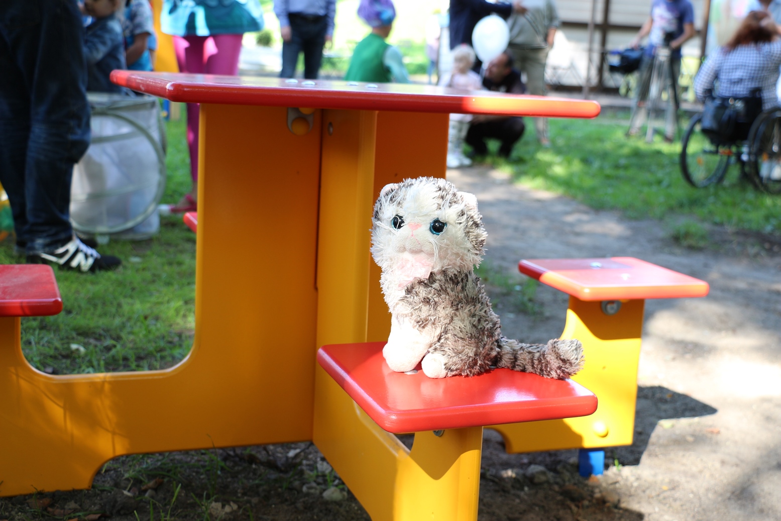 Пять новых игровых элементов, в том числе, разноуровневая песочница, в которой в день открытия можно было найти клад, дартс для мячей, меловая доска – вызвали восторг не только у ребятишек с ограниченными возможностями здоровья, но и у тех, кто запросто прыгает на захватывающей дух «тарзанке», расположенной рядом, и лихо гоняет на самокатах и велосипедах.