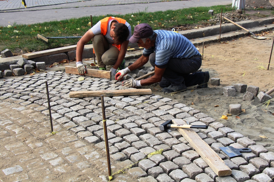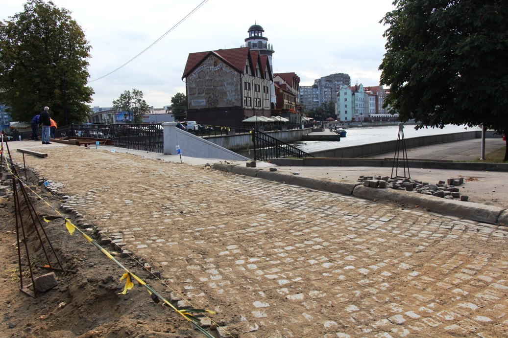 На подходах к мосту идет укладка брусчатки. Крупный булыжный камень, так называемую «буханку», снимают и передают в казну. Этот камень пригодится на других городских объектах. На подходах к мосту «Медовый» укладывают более мелкую калиброванную брусчатку – «шашечку».